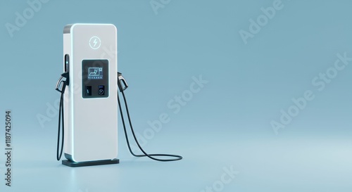 A sleek EV Charging station against a clean, minimalistic blue background. This image embodies the promise of sustainable energy and the growing ubiquity of electric vehicles.
