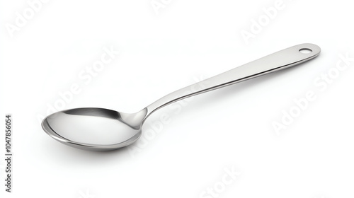 A sleek, modern stainless steel spoon isolated against a white background, perfect for culinary and kitchen-related imagery.