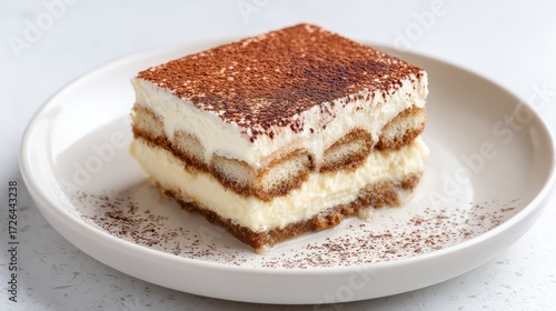 A slice of tiramisu on a plate.