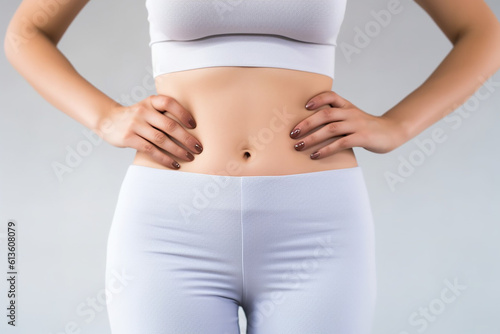 a slim woman waist in white fitness cloth Generative AI
