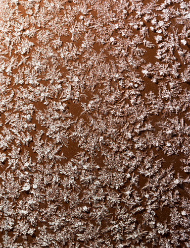 A snowflake on a brown fence as a background