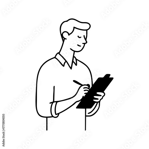 A social worker writes notes on a clipboard, representing care, assessment, and professional support services in social work or counseling.