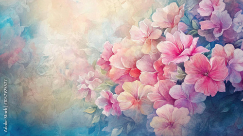 A soft and elegant floral painting with pink and peach flowers, reflecting a dreamy and serene ambiance, perfect for adding a touch of beauty and calm.