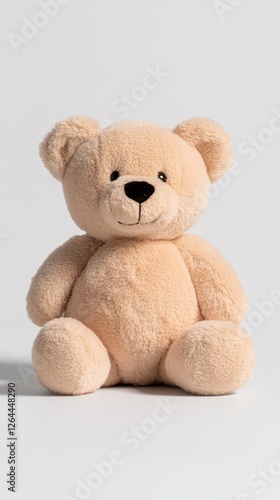 A soft, beige teddy bear sitting upright, designed for comfort and companionship.