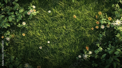 A soft grass texture with small wildflowers scattered across, natural and peaceful