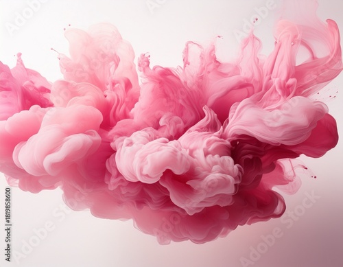 a soft pale pink cloud of ink or dye diffused and swirling in a voluminous amorphous shape against a stark white background