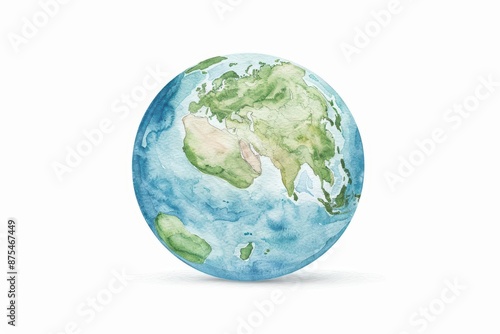 A soft watercolor rendering of the greenhouse effect, showing the Earths atmosphere trapping heat from the sun, isolate on white background with copy space
