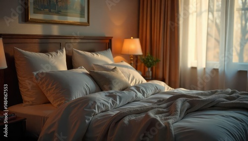 A softly lit bedroom, intimate and romantic, featuring a neatly made bed with pillows and blankets, suggesting a recent embrace Perfect for themes of romance, intimacy, and passion , sheets, intimacy