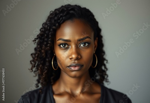 A solemn afro-american woman with a sad expression