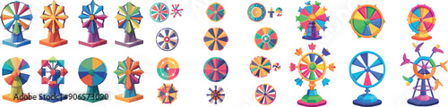 A spinning roulette wheel with flat icons symbolizing fortune or bankruptcy - modern elements of bankruptcy or good fortune
