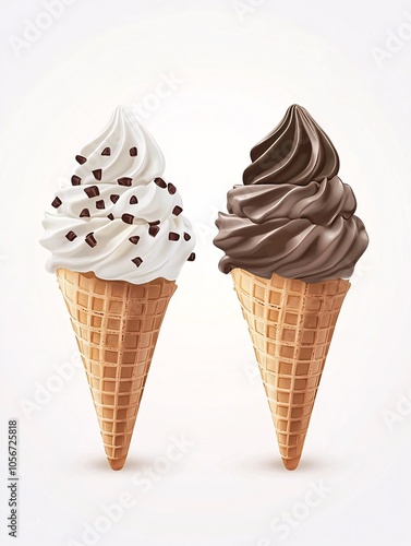 A split graphic featuring two distinct ice cream cone styles, emphasizing their contrasting flavors and designs against a white background.