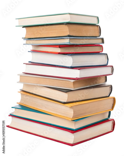 A stack of books isolated on transparent background