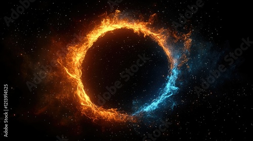 A star exploding in space, with an orange and blue glow around it, forming the shape of a circle, with stars visible in the background