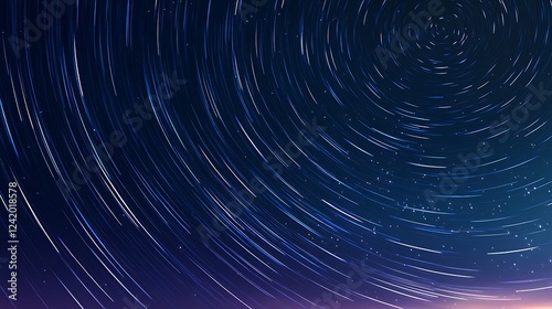 A starry night sky with circular star trails, showcasing celestial movement.