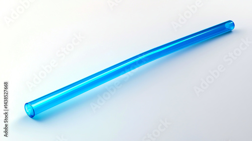 A straw made of blue plastic, laid flat and isolated on a white background with a clipping path.