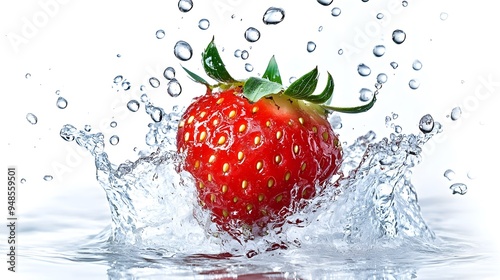 a strawberry falls in the water