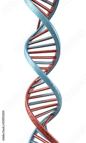 A striking 3D representation of a DNA double helix, showcasing intertwining strands in red and blue tones, symbolizing genetic research and innovation.