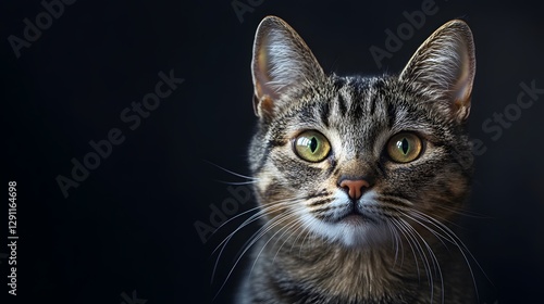 A striking cat posing elegantly against a black background highlighting its features and unique expressions