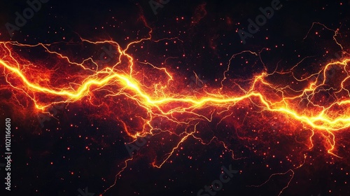 A striking visual of vibrant orange lightning bolts against a dark cosmic background.