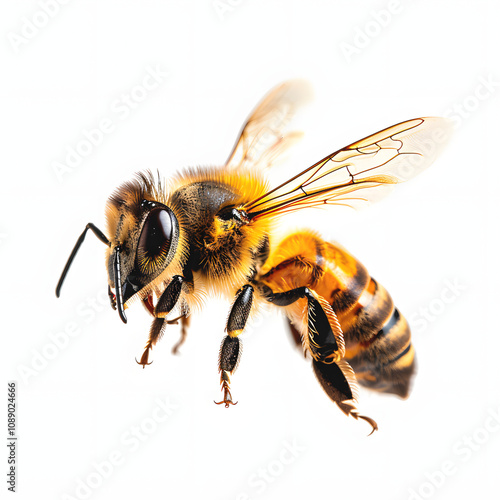 a stunning bee is flying, isolated on , macro, incredible pollinator with a white accent, png