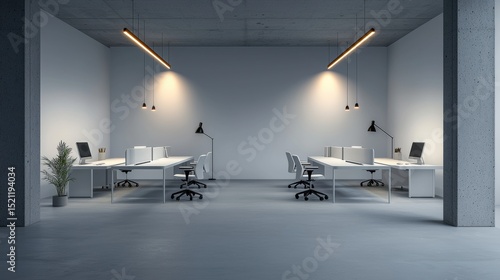 A Stunning Hyper-realistic Photograph of a Minimalist Modern Office Designed for Productivity and Collaboration