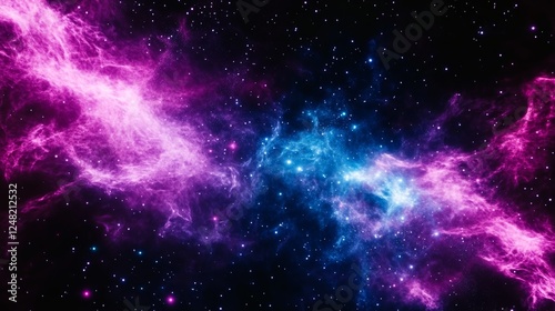 A stunning nebula of vibrant blues purples and pinks bursts forth against the backdrop of a star-speckled dark sky Beautiful cosmos