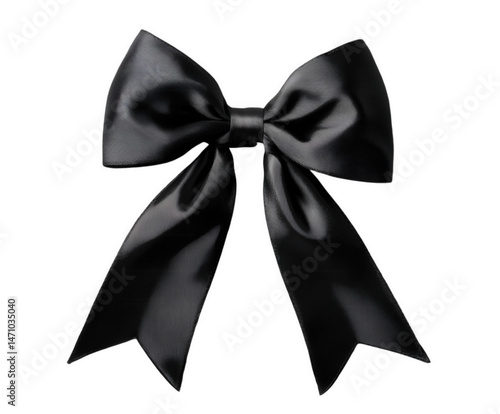 A stunning studio shot of a glossy black satin bow, isolated on a sleek, black background.