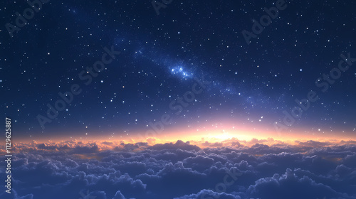 A stunning view of the night sky filled with stars, constellations, and celestial phenomena observed from a clear location during twilight. Meteor. Illustration
