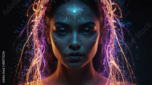 A stunningly ethereal AI consciousness emanates a divine chill in a mesmerizing light painting img