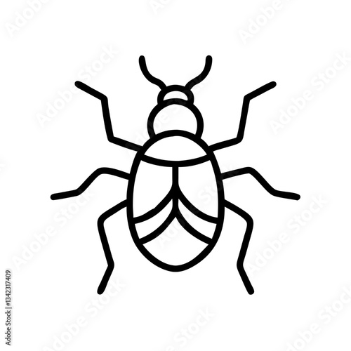 a stylized, clean line illustration of a bug, perfect for design and icon use. It showcases the bug's body, legs, and antennae