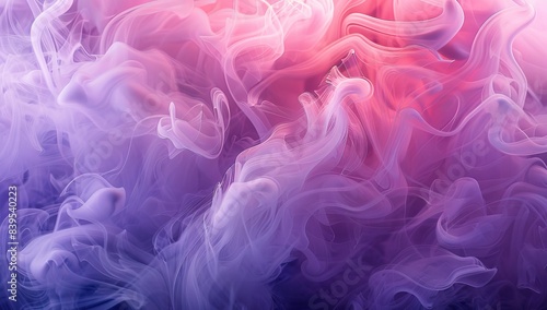A surreal digital art piece featuring an ethereal background of pink and purple smoke, creating a dreamlike atmosphere with fluid shapes and soft lighting effects.