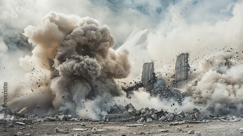 A swirling cloud of smoke and dust over shattered concrete AI generated illustration