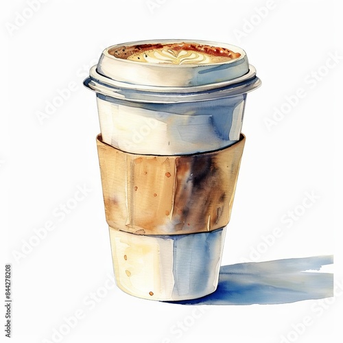 a Takeaway Coffee Cup clipart, drink and coffee element,watercolor illustratior, isolated on white background