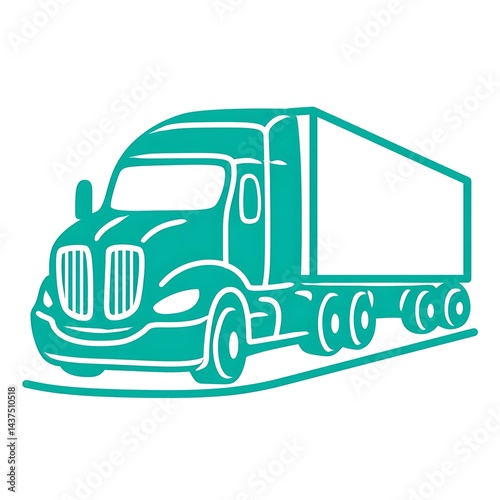 A teal-colored semi-truck with a trailer