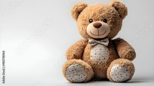 a teddy bear sitting on a white surface
