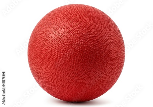 A textured red stress ball isolated on a white background showing the round shape and dimpled surface detail