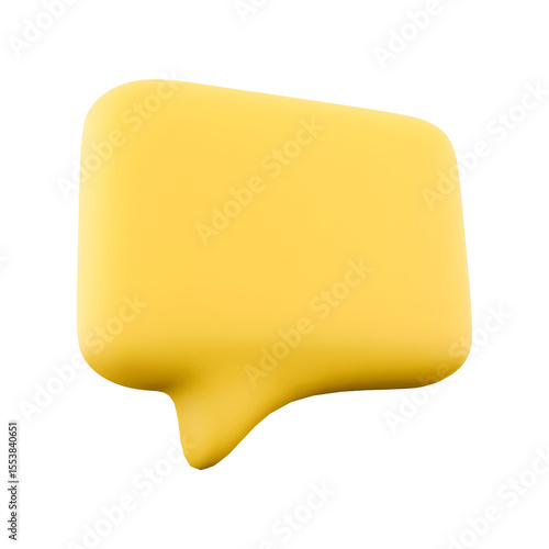 A three-dimensional yellow speech bubble, symbolizing communication and conversation.