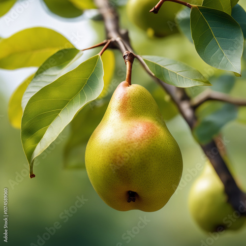 A tree with green pears hanging from it
