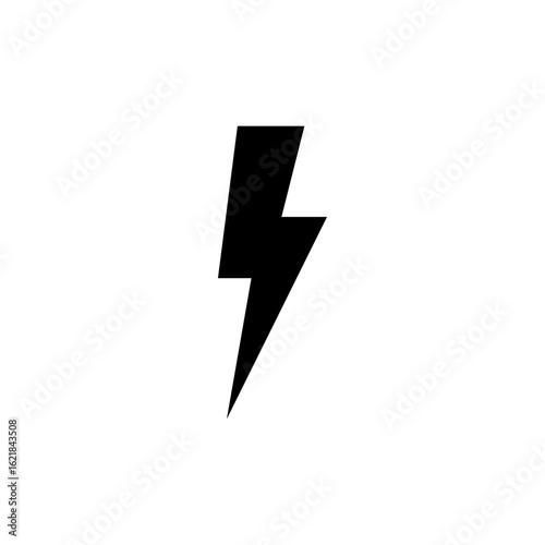A vector illustration of a minimalist black lightning icon on a white background. Suitable for use as a symbol for electricity, energy, power, or speed in graphic design or technology applications.