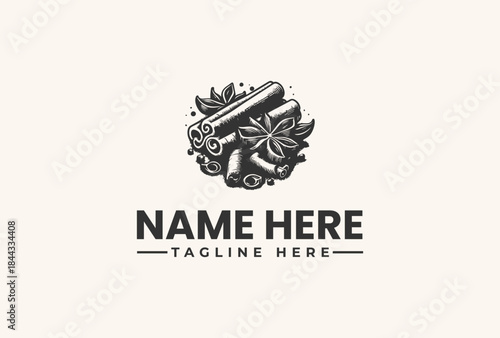 A vector logo illustration featuring a stylized design with floral elements and a pencil on a light beige background, with space for a name and tagline.
