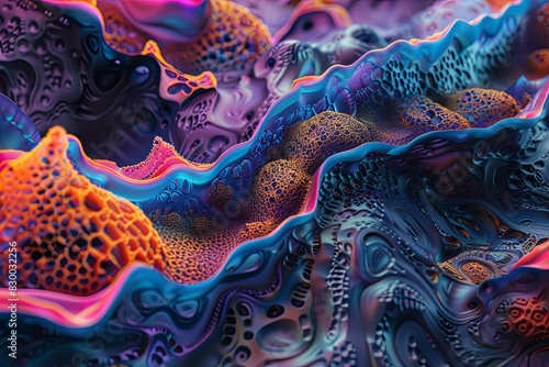 A vibrant abstract organic form that blends fluid, realistic, and fantastical elements. Ultra-detailed textures and bold, dynamic lines create an intricate