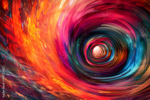 A vibrant, abstract tunnel with swirling colors and dynamic light effects, creating an immersive visual experience.