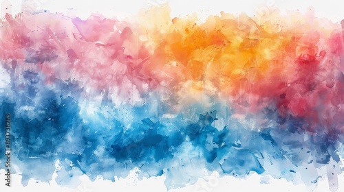 A vibrant and colorful abstract watercolor painting with blended hues of blue pink orange and yellow