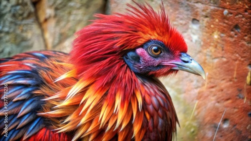 A vibrant bird displays its colorful plumage.