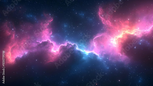 A vibrant cosmic nebula filled with stars and colorful gases.