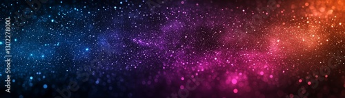 A vibrant cosmic scene showcasing a blend of deep blues, purples, and oranges, filled with shimmering stars and a mystical aura.