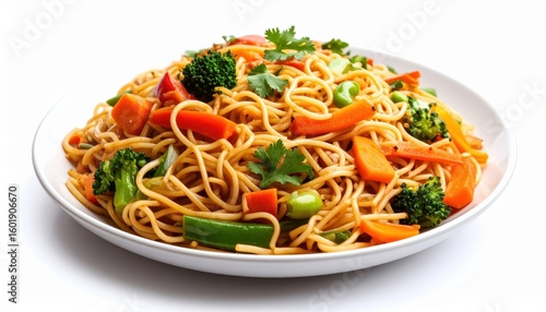 A vibrant dish of stir-fried noodles with fresh vegetables, showcasing a healthy and colorful meal option.