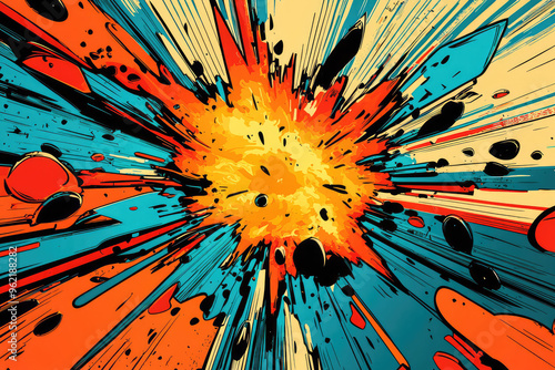 A vibrant explosion of color and movement, radiating outward with intense energy and a sense of chaos.