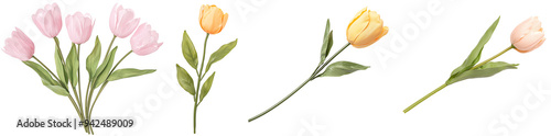 A vibrant illustration of flowers featuring pink and yellow blooms, ideal for spring themes and floral design projects.