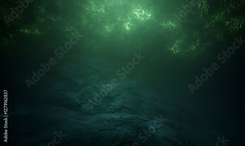A vibrant image of a deep ocean trench illuminated by mysterious bioluminescent organisms.